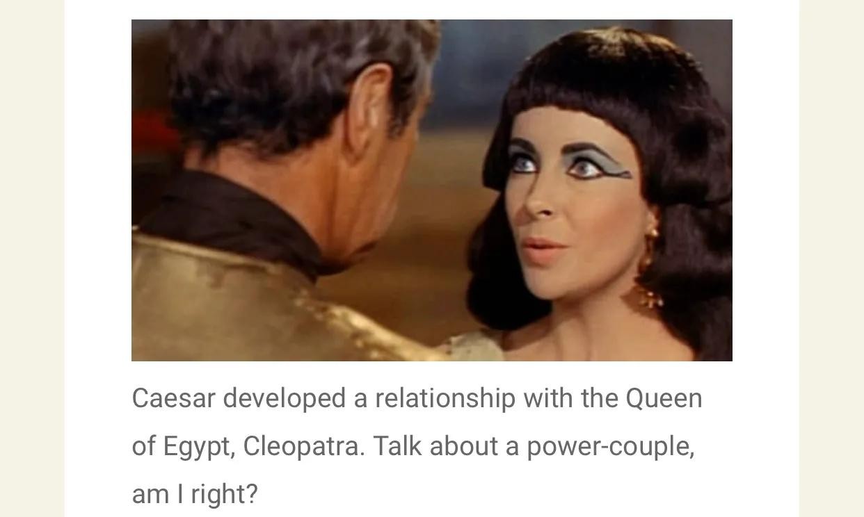 凯撒与埃及女王克利奥帕特拉建立了关系。 谈论权力夫妇,我说得对吗?