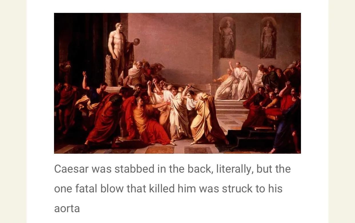 字面意思是凯撒的背部被刺伤,但杀死他的致命一击是击中了他的主动脉。