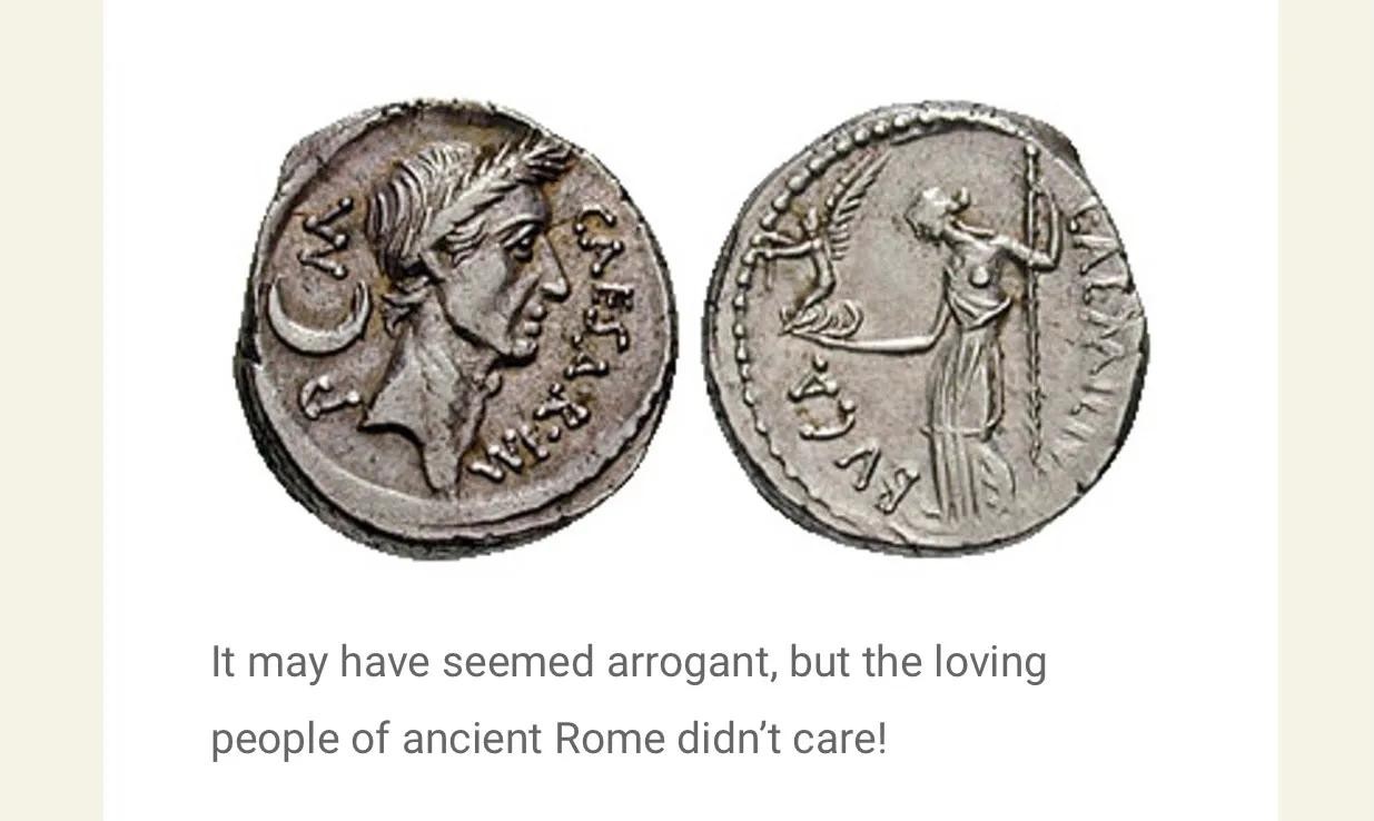 朱利叶斯·凯撒(Julius Caesar)是第一位在他有生之年将自己的肖像铸在硬币上的罗马政治家。 直到公元前 44 年,罗马银币上还没有出现过活着的男人或女人。 因此,这张广泛交换的形象成为了凯撒权力和影响力的宣传。