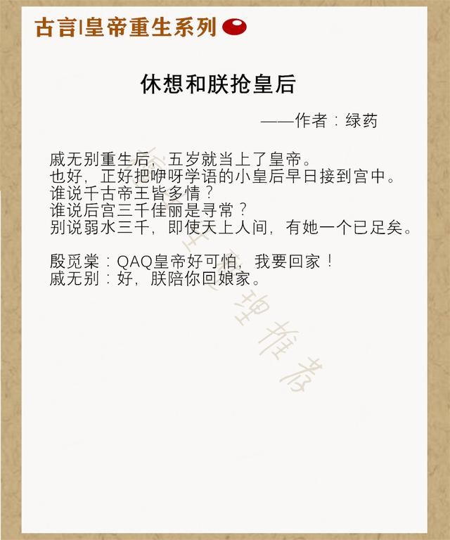 亲们,今天推一系列“皇帝男主重生”的古代言情吧!