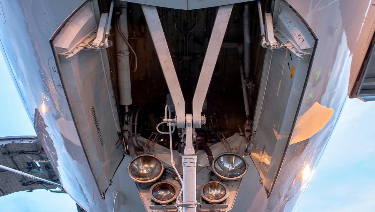 他们就这样默默的藏在了飞机的起落舱中,这个时候地面安检人员来检查飞机。