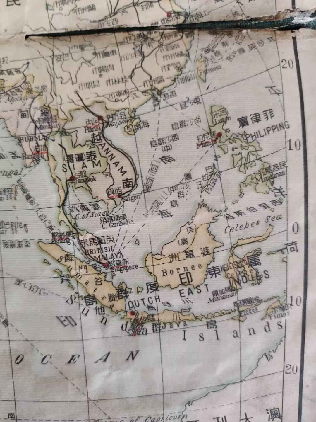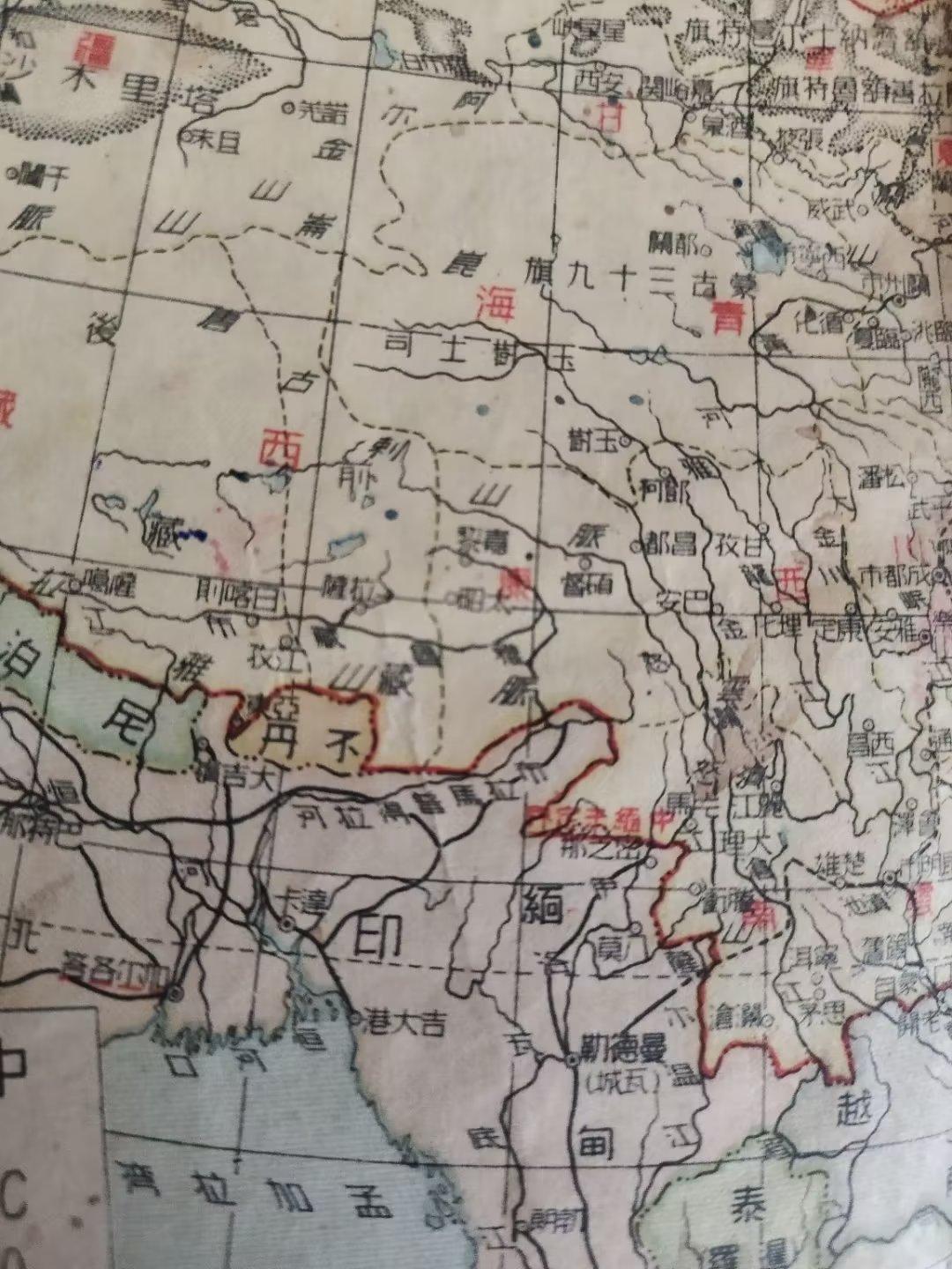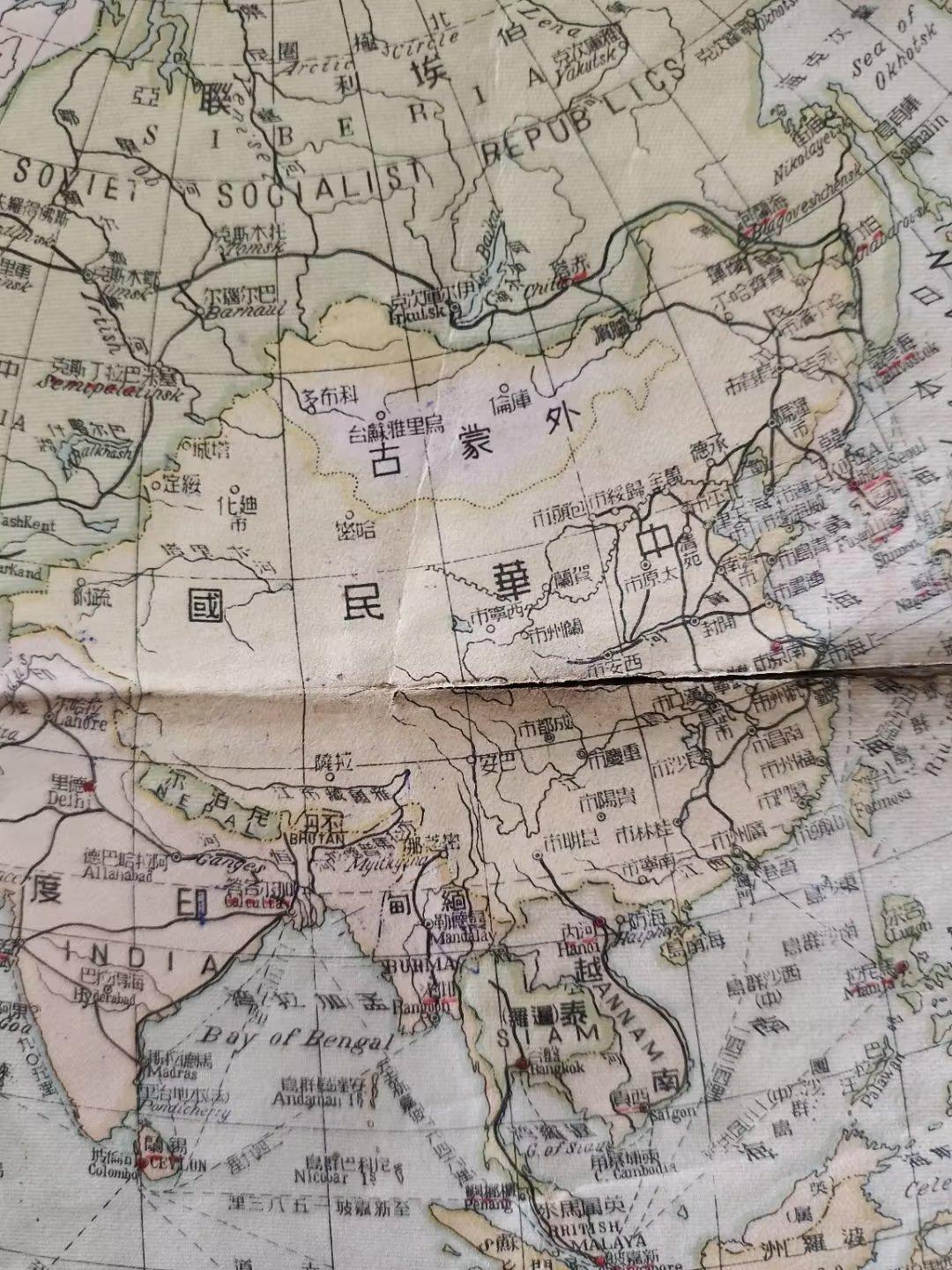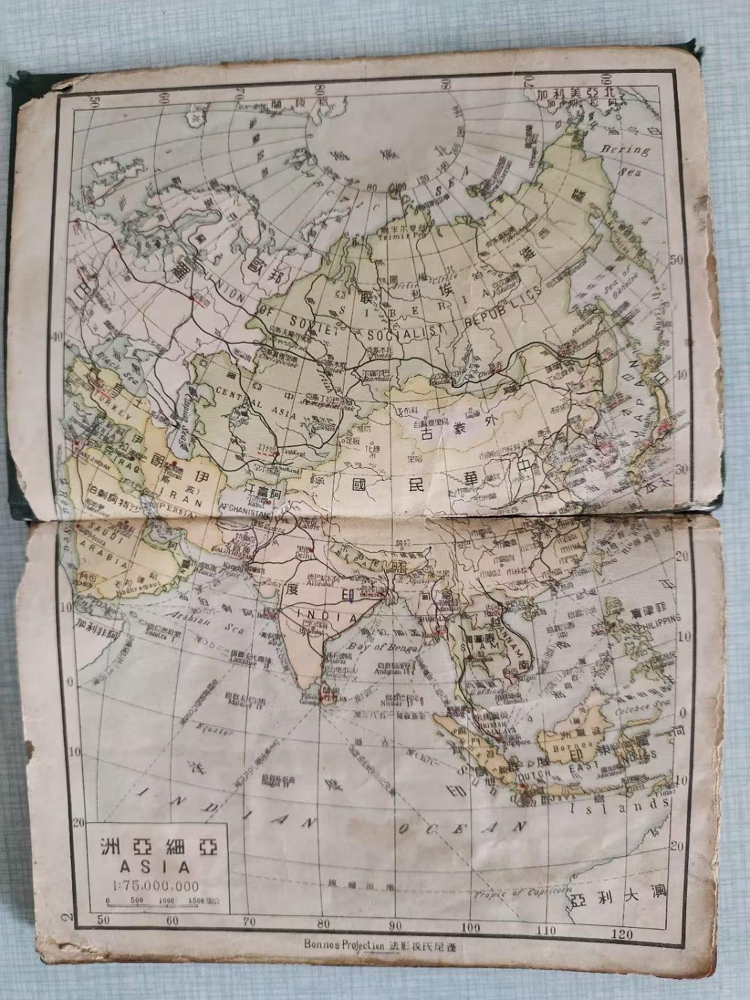 (上图)1946年中华民国地图上的亚洲地图。