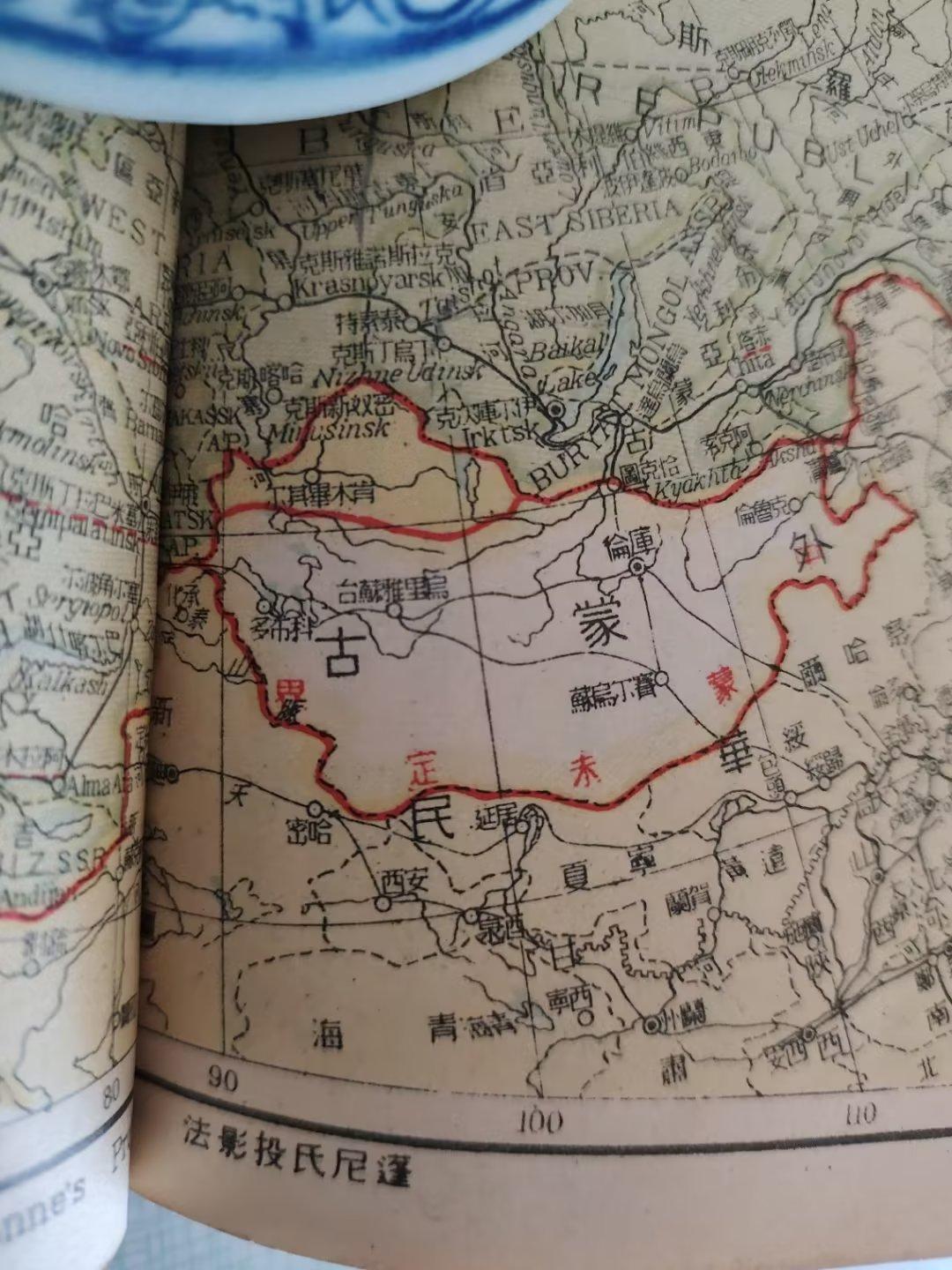 (上图)1946年中华民国地图上显示外蒙古未定界。