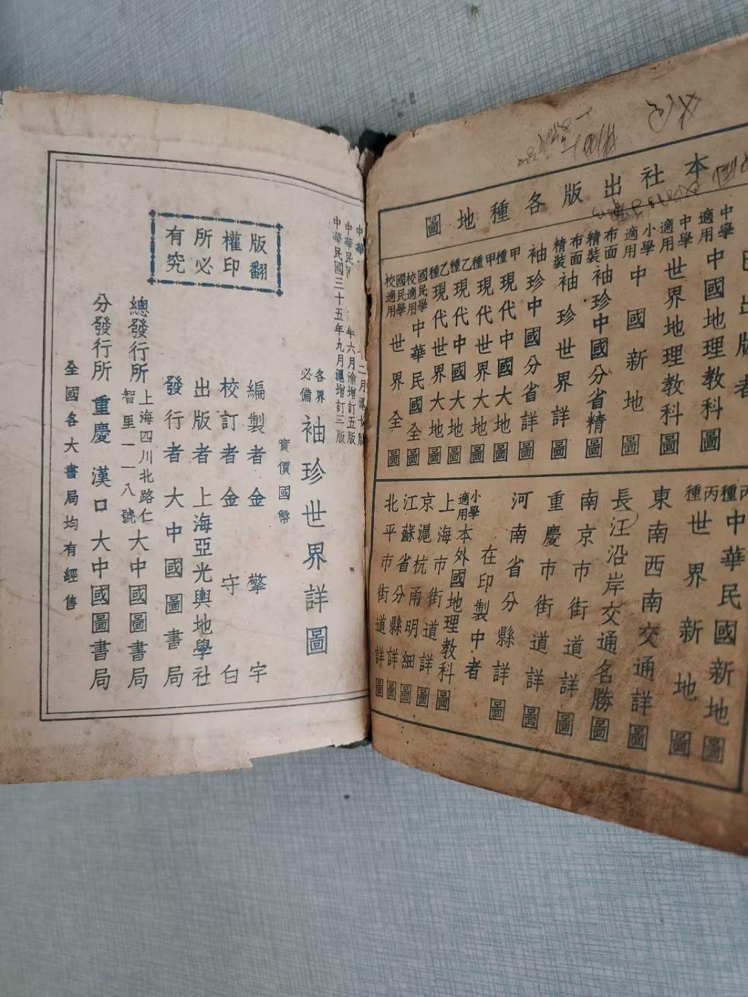 近来,从市场上淘来一本中华民国时期的地图册,里面有世界地图和中国地图,年代是1946年9月,反映了第二次世界大战结束以后的世界格局。