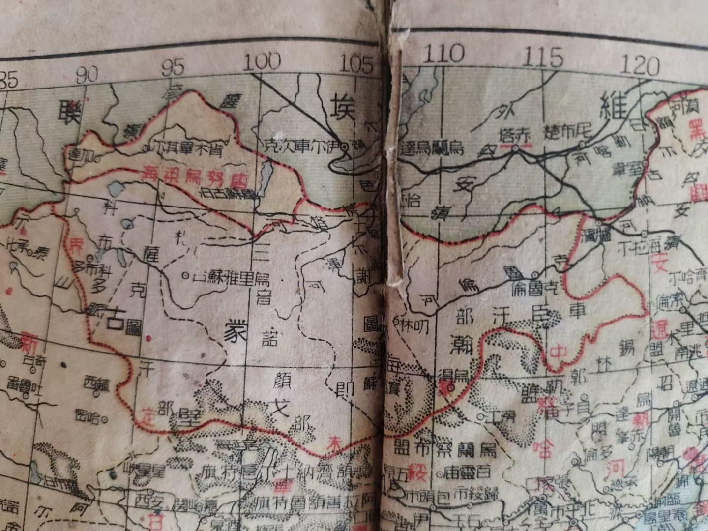 (上图)1946年中华民国地图上显示外蒙古未定界的虚线。