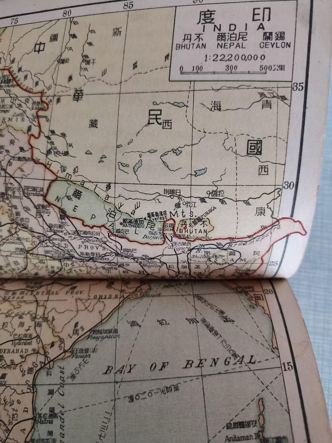 (上图)1946年中华民国地图上显示不丹国的右边是中国的藏南地区。