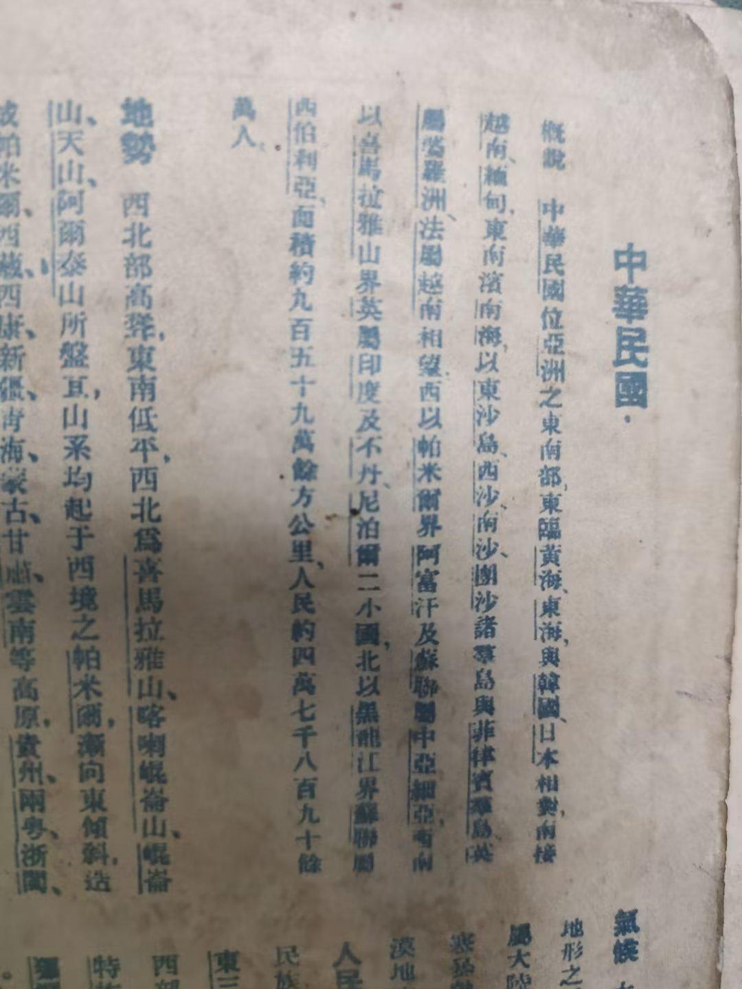 (上图)1946年中华民国面积约九百五十九万余方公里。人民约四万万七千八百九十余万人。(地图说明词少了一个万)