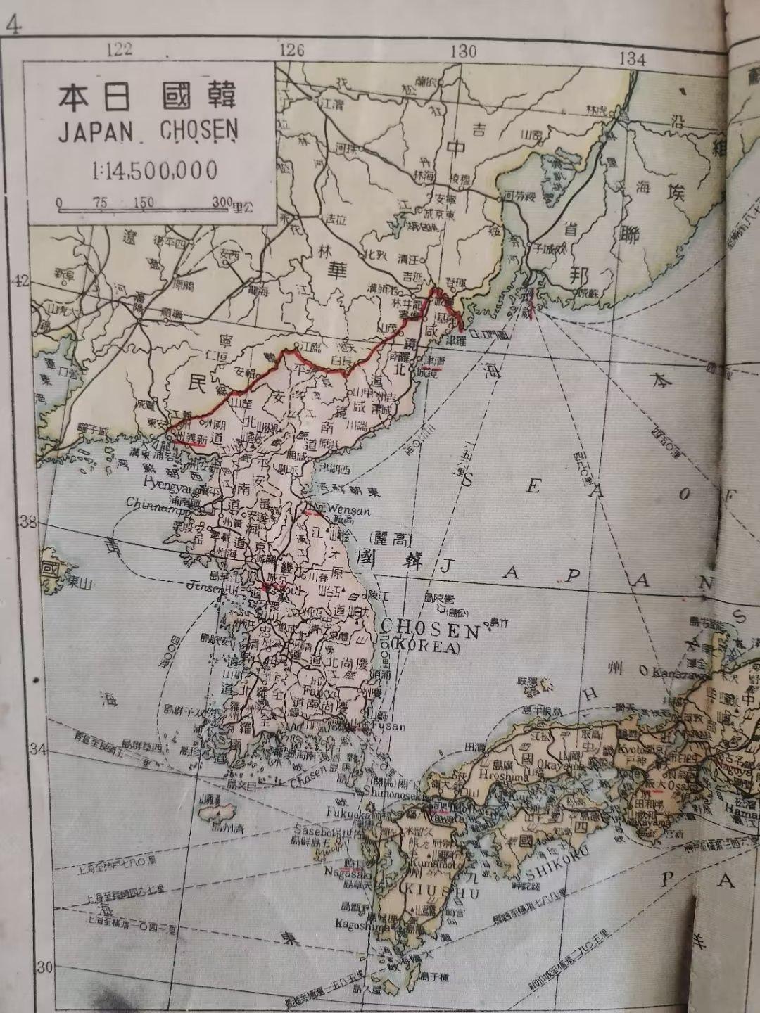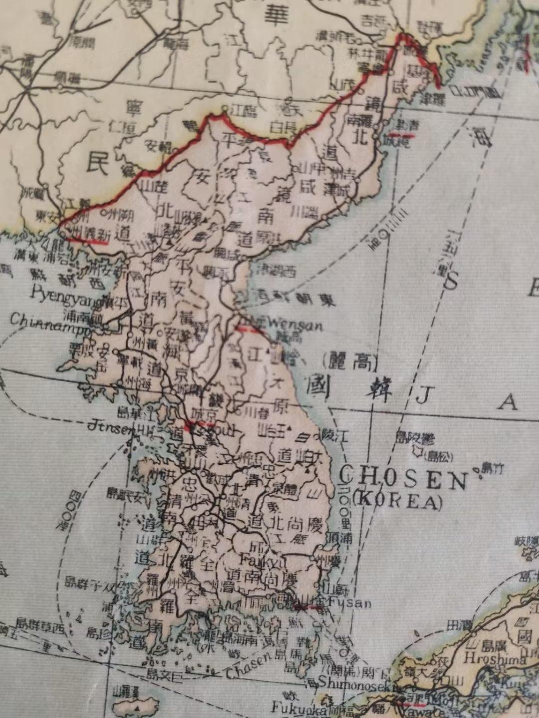(上图)1946年中华民国地图上只有韩国名称。