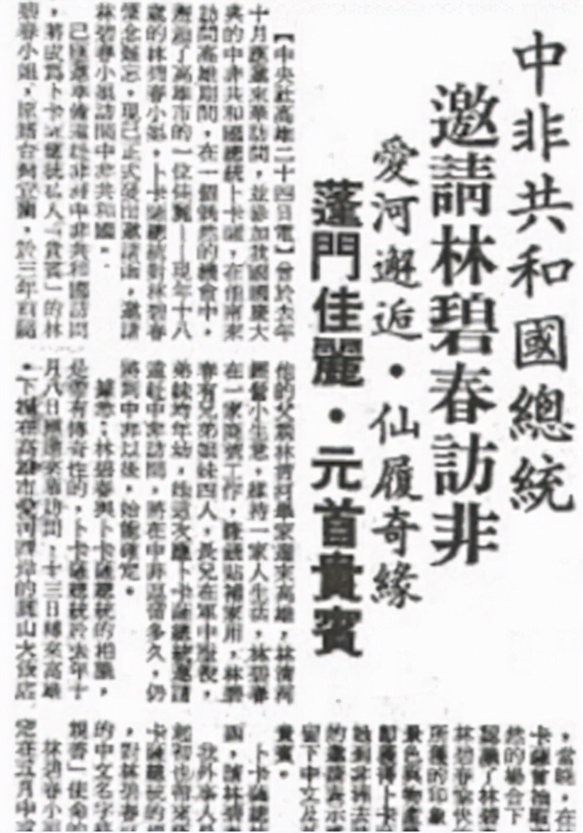 因此,林碧春被当成政治工具远嫁非洲。当时的媒体还用了“仙履奇缘”、“爱河邂逅”等等,就连报纸都一度脱销。