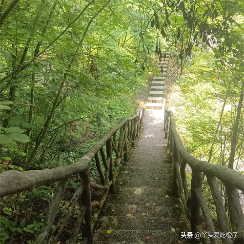 整个栈道曲径通幽,绿荫掩映,不时传来几声鸟鸣,旁边的河水和山上的溪水好似耳边的音乐阳光透过树叶缝隙斑斑点点的洒在石阶上,闭眼感受微风拂过脸庞,别提有多惬意了!