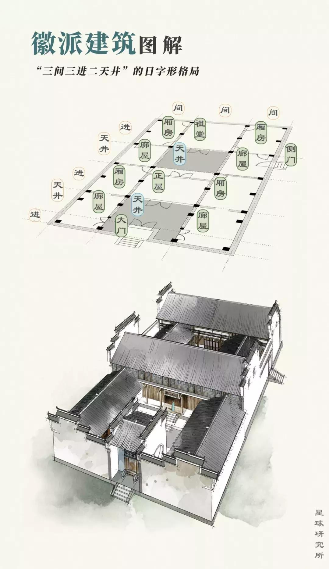 ▼徽派建筑常有“千金门楼四两屋”之说,下图为黟县关麓八大家,