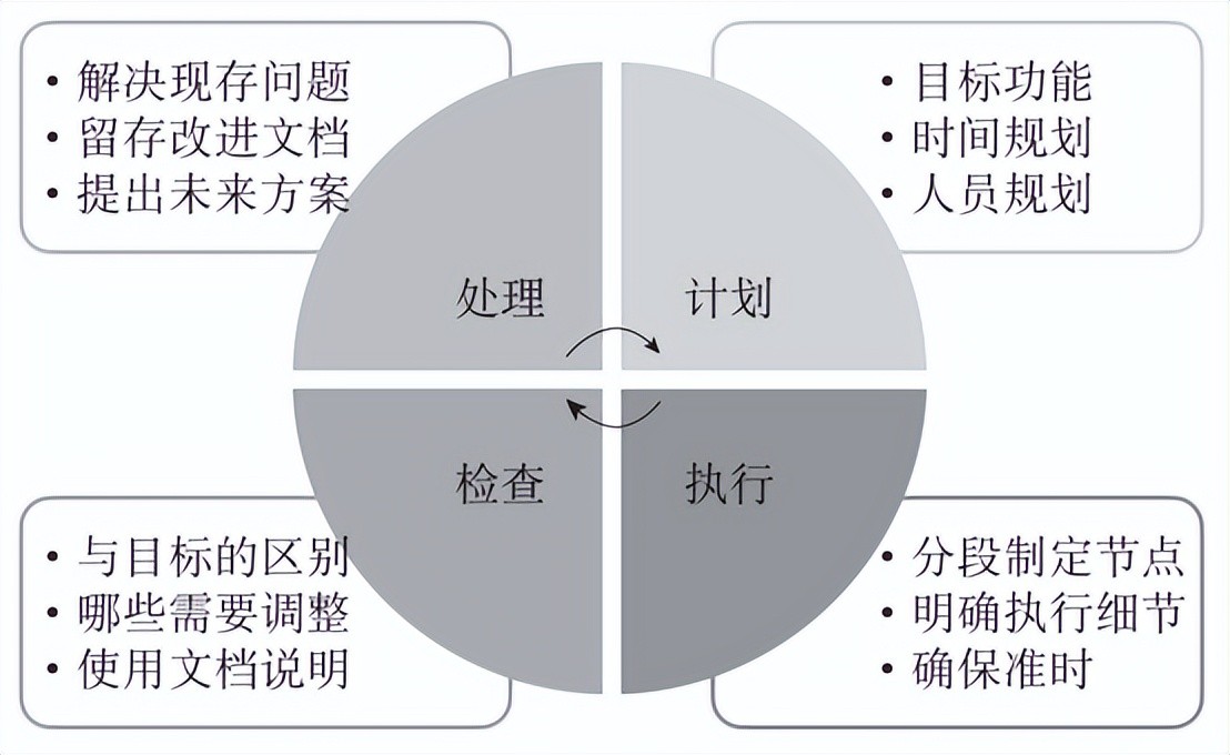 PDCA循环的研究起源于20世纪20年代,有“统计质量控制之父”之称的休哈特引入了“计划一执行一检查”(plan-do-see,PDS)的雏形,后来戴明将PDS进一步完善为“计划一执行一检查一处理”(plan-do-check-act,PDCA)这样一个质量持续改进模型。PDCA循环又叫戴明环,其中,计划包括方针和目标的确定以及活动计划的制订;执行是指具体运作,实现计划中的内容;检查是指总结执行计划的结果,分清哪些对了,哪些错了,明确效果,找出问题;处理是指就检查的结果而言,对成功的经验加以肯定,并予以标准化,对于失败的教训也要总结,以免重犯。对于没有解决的问题,应提交给下一个PDCA循环去解决。