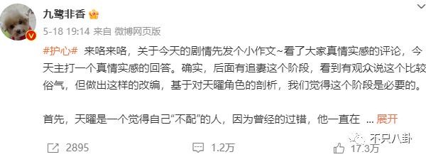 编剧九鹭非香因此专门祭了篇小作文给剧粉解释 ↓