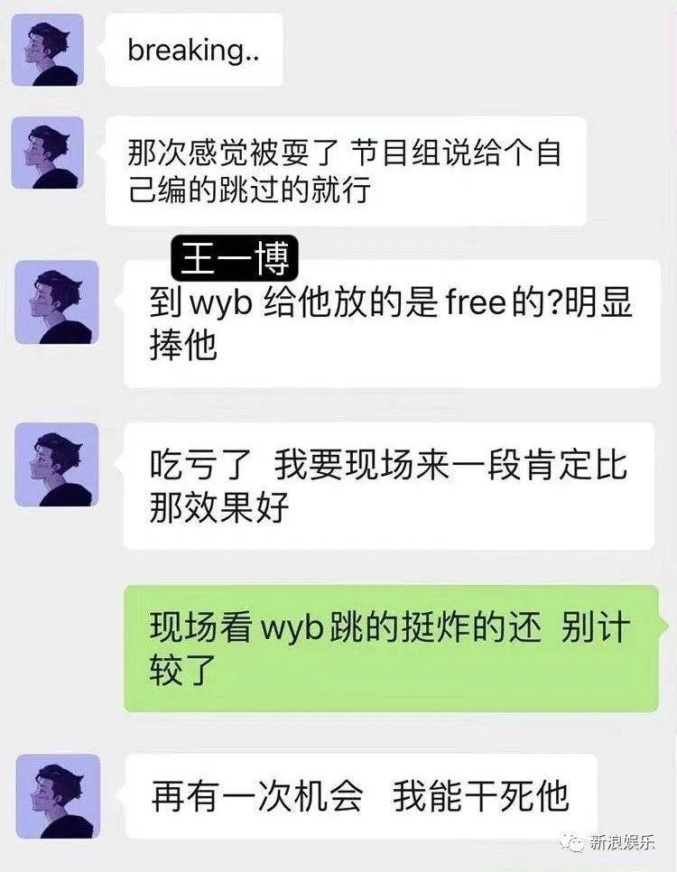 (↑ 丁泽仁在和站姐的聊天记录中说自己能 " 干死 " 王一博、公司故意针对他等)