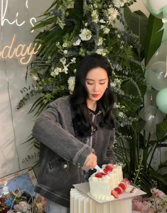 刘诗诗穿着牛仔外套,打扮随意淡然,她认真的切着蛋糕,接受身边好友的祝福,身后都是白色的鲜花,这一切非常岁月静好,温和从容。