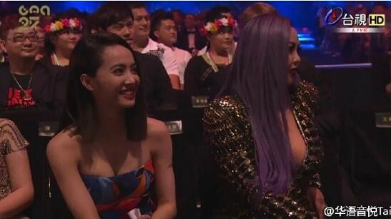在台下,她跟娇小的蔡依林坐一起,阿妹简直就是侧漏啊