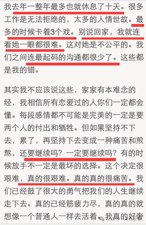 离婚的原因是两人圈子越来越远,他越来越忙,一整年休息不到十天,夫妻俩见面都很难。