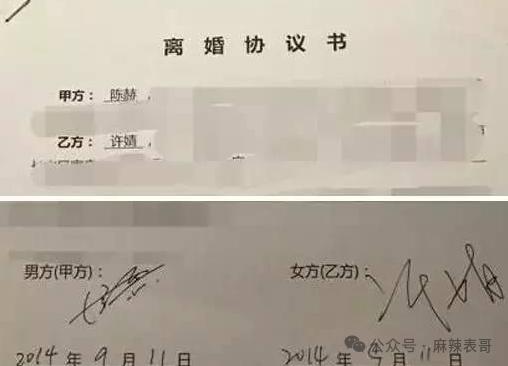面对网友的质问,陈赫很快甩出了离婚协议书。