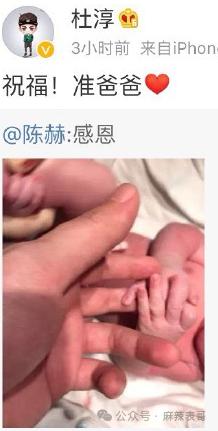 2016年10月23日,陈赫官宣得女,曾参加过陈赫和许婧婚礼的杜淳送上祝福。