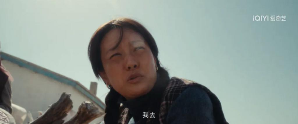 伴随着一句"诶呦,我去",仰拍镜头里出现了一张粗粝黝黑的女性面孔。