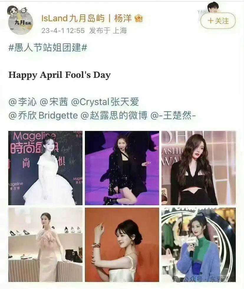 于是不少瓜众都想起去年愚人节站姐团建,杨洋站姐发的这组照片: