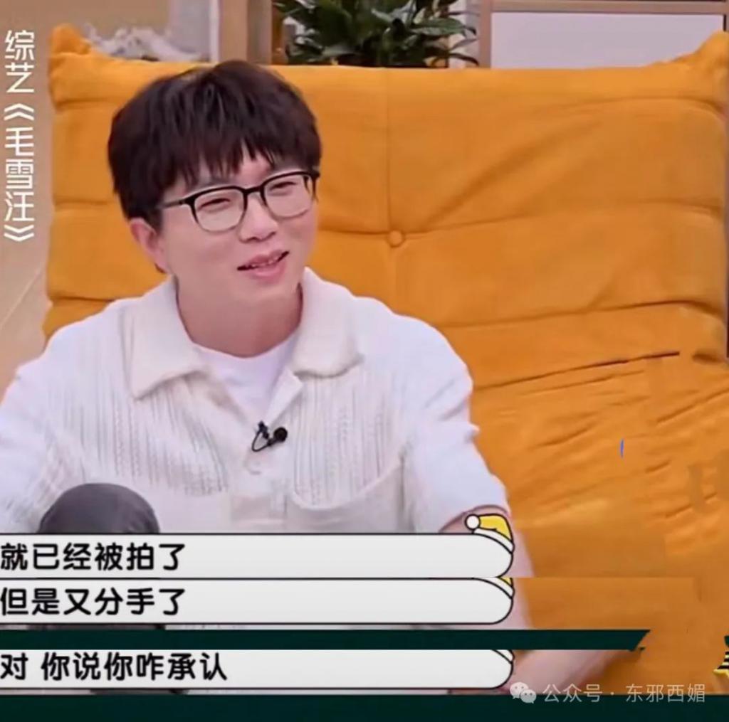毛不易曾跟李雪琴、戚薇一起八卦为什么明星不公开恋情,毛不易说:被拍到不假,但捅出来的时候已经分手了,你说咋承认嘛。