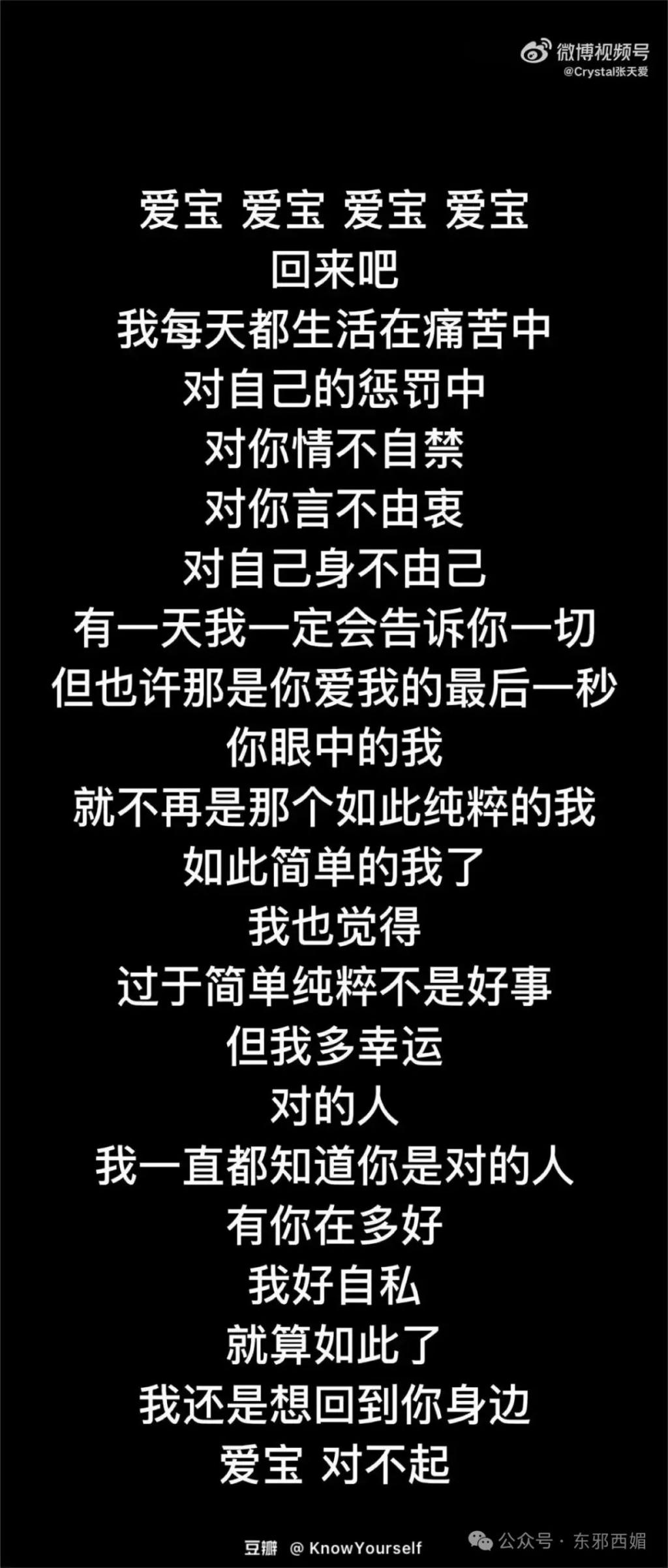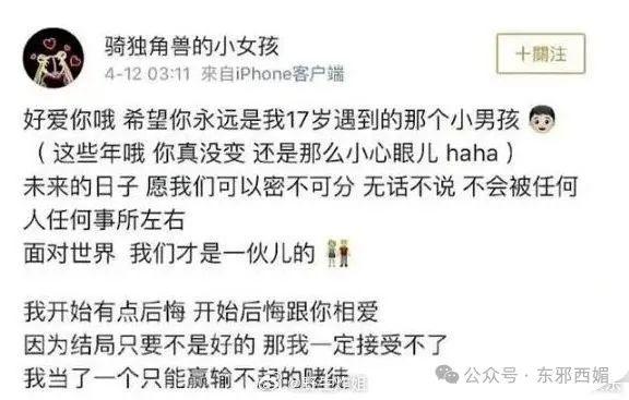 19年4月,她写道:我开始有点后悔,开始后悔跟你相爱,因为结局只要不是好的,那我一定接受不了,我当了一个只能赢输不起的赌徒。
