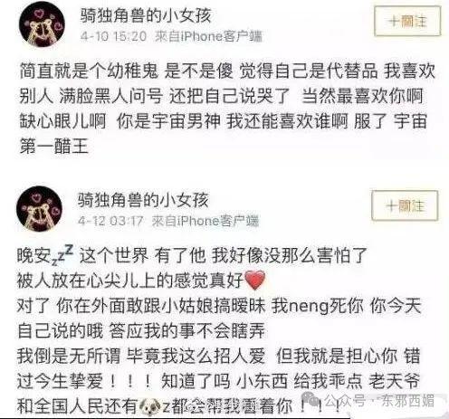 接着疑似乔欣的小号被扒出,信息量无限巨大。比如曾经发博称"居然和17岁喜欢的男生在一起了,很有未来的样子":