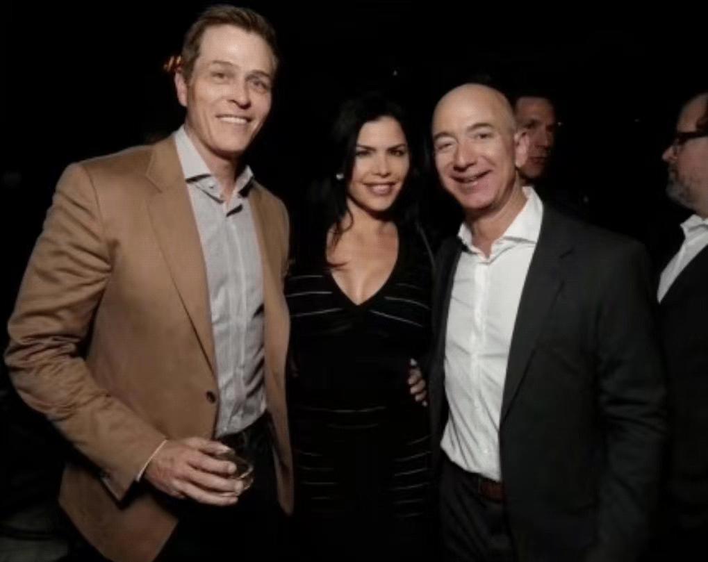 ▲ 从左至右:前任 Tony Gonzale,前任与桑切斯的儿子 Nikko,桑切斯、贝佐斯