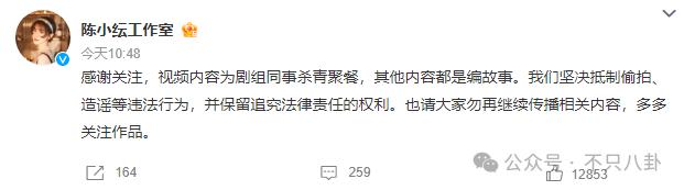 陈小纭:剧组杀青聚餐,其他都是编故事,坚决抵制偷拍造谣↓