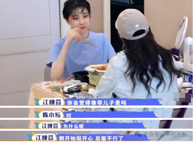 事后,陈小纭和好闺蜜聊天的时候说姐弟恋就像自己在带儿子,前面还挺甜的,但是后面就会非常累,似乎在说体验不是很好↓