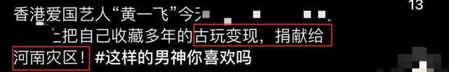 爆料人表示,黄一飞的这笔钱,是他变卖了自己收藏多年的古玩后才捐出的。