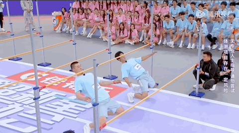 两个将近 190 的大高个,非要比柔韧性。陈牧驰一边 " 下跪行礼 " 到终点,感觉下一秒就要喊出父王了。何旭聪也不服输,自创 " 蹦地式过杆 "。连作弊都如此之同步,难道肌肉男的脑回路都长一样?
