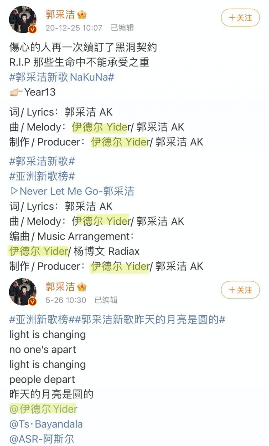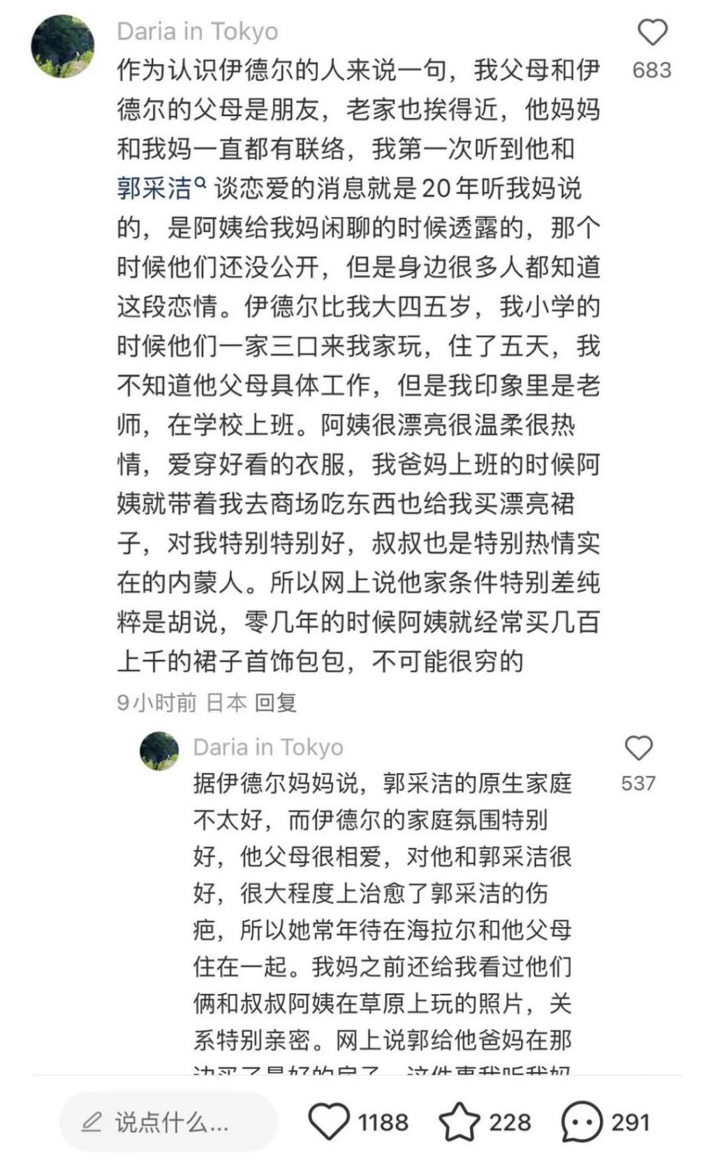 这还不够,紧接着有人扒出早在郭采洁伊德尔恋情曝光的前一年,就有女生自称是伊德尔前任,自曝两人曾有过交往关系。