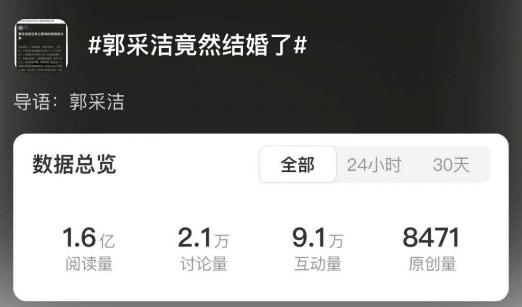 前几天,# 郭采洁竟然结婚了 # 的话题登上热搜。