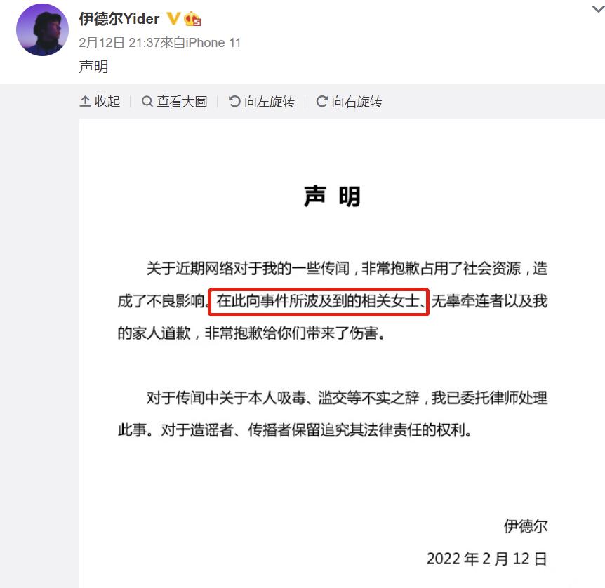 伊德尔虽然第一时间否认了吸毒、滥交之事,