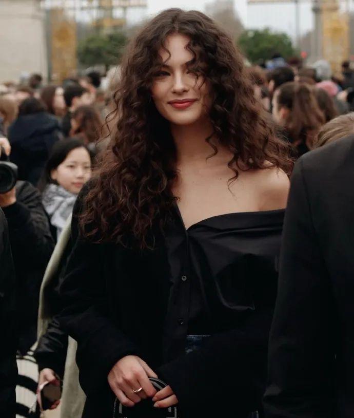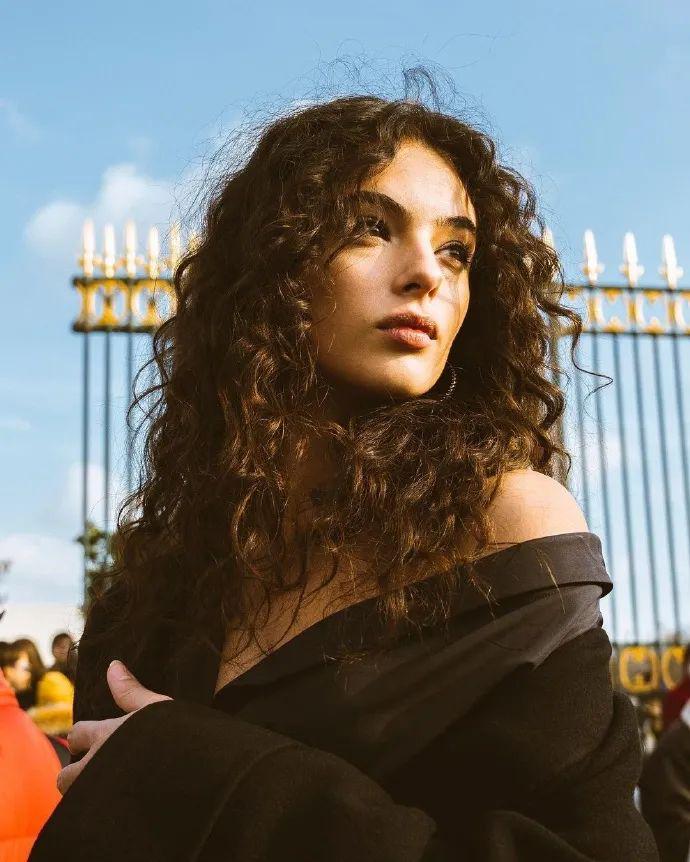 侧漏香肩,搭配一头蓬松的卷发,性感又慵懒,才19岁就已经出落得风情万种了,完美遗传了妈妈的美貌,美得浑然天成。