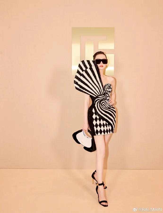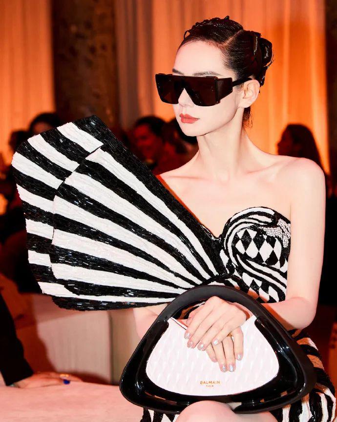 身为Balmain老朋友为的戚薇此次看秀选择了2024早秋火烈鸟刺绣礼服搭配同色系包袋、墨镜,甚至黑白渐变刘海短发点缀下,整个造型未来感十足,这么突破的造型放在她身上无比合适。