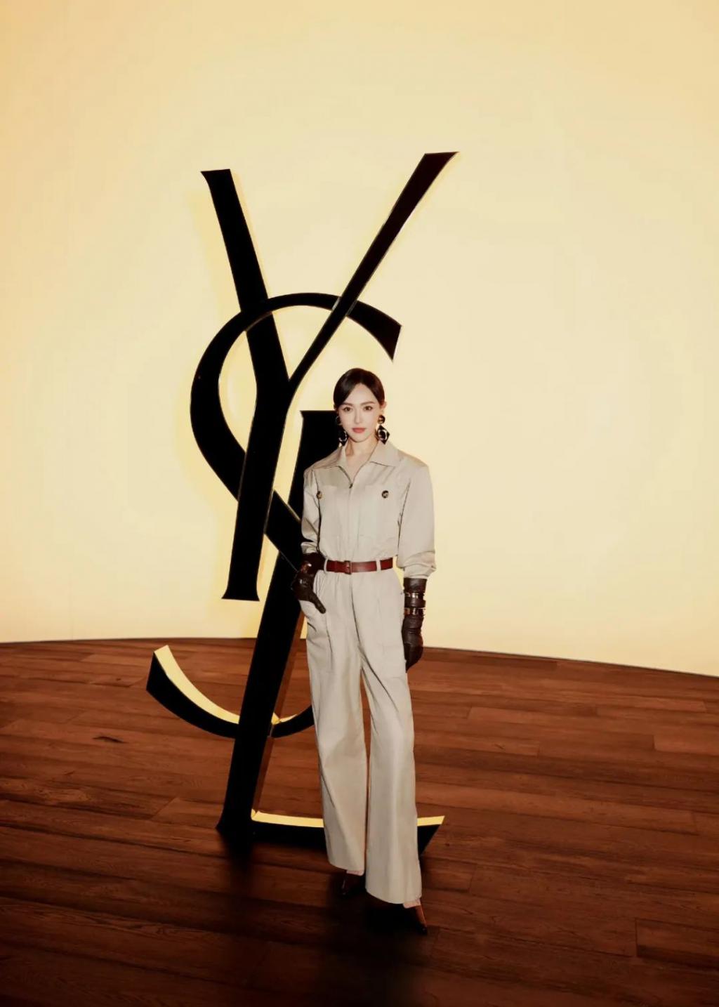 高挑的身材越轻松驾驭这套连体工装,是气场十足的圣罗兰女郎没错了。
