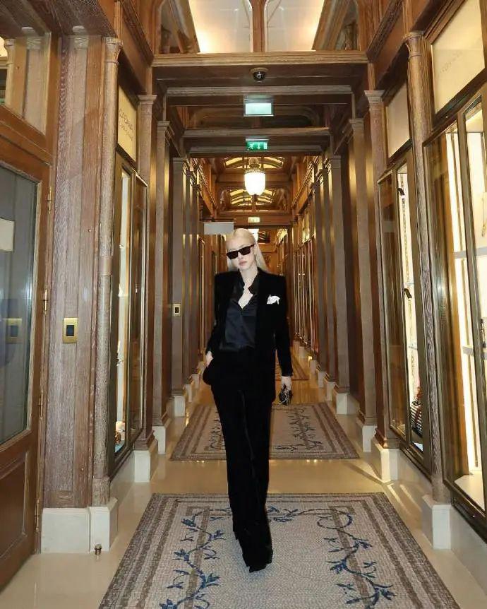 另一套造型直接斯哈斯哈,恰到好处的衬衣纽扣,西装配墨镜霸道女总裁上线。