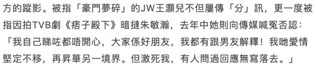 但当时JW还是表现出"情比金坚"的样子,她在面对媒体时强调,"我们多年来一路互相支持,有什么事大家都在身边,不需要多说,行动最实际","我哋讲心唔讲金。"