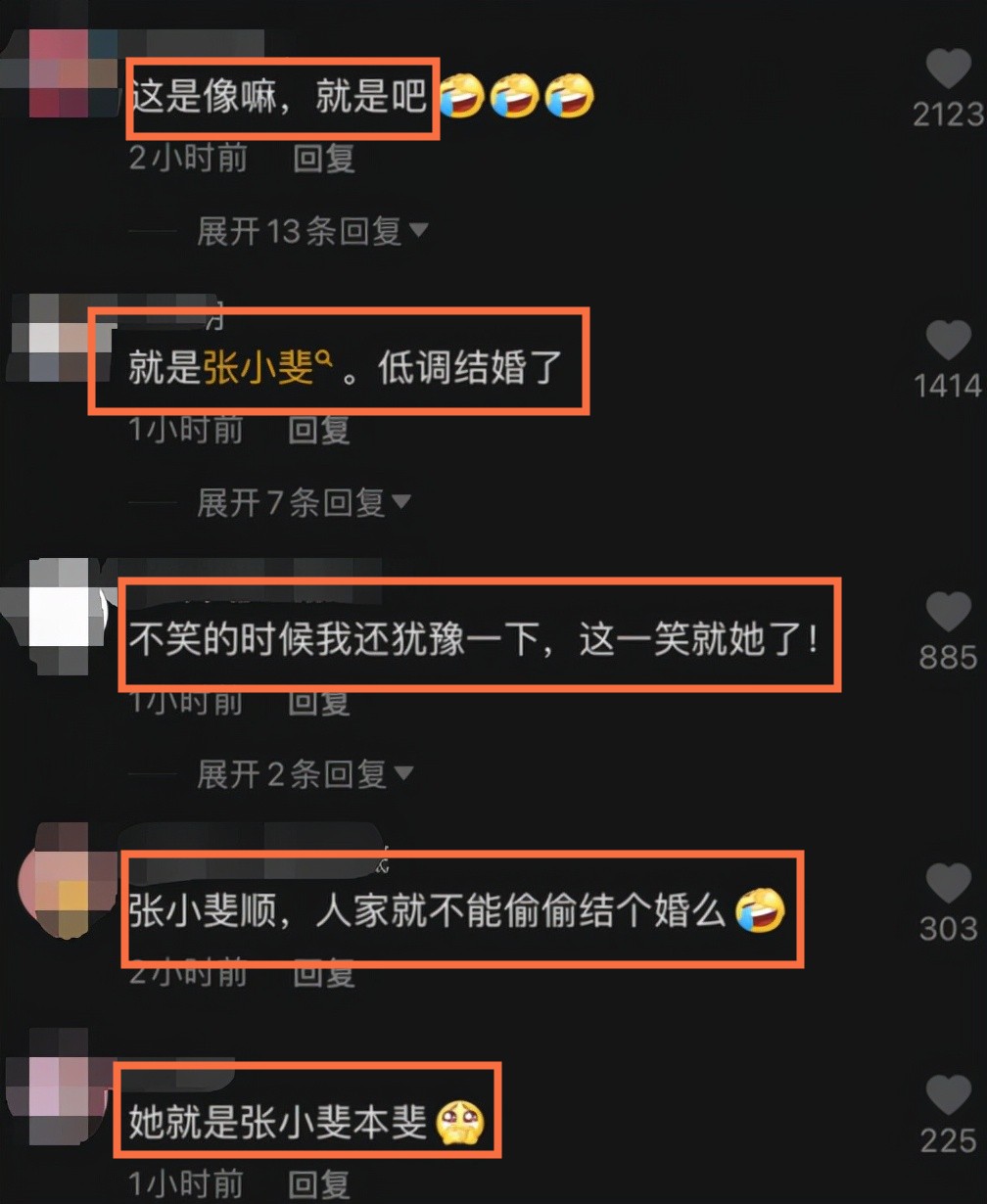 这张照片曝光出来后,网友纷纷在留言里评论,说这个不是张小斐吗?怎么突然结婚了?