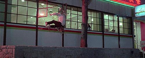 从 21 楼的大厦外速降,没有吊威亚,没有地面保护,被称为影史上的最危险镜头,导致当时保险公司都没人敢接成龙的保险。