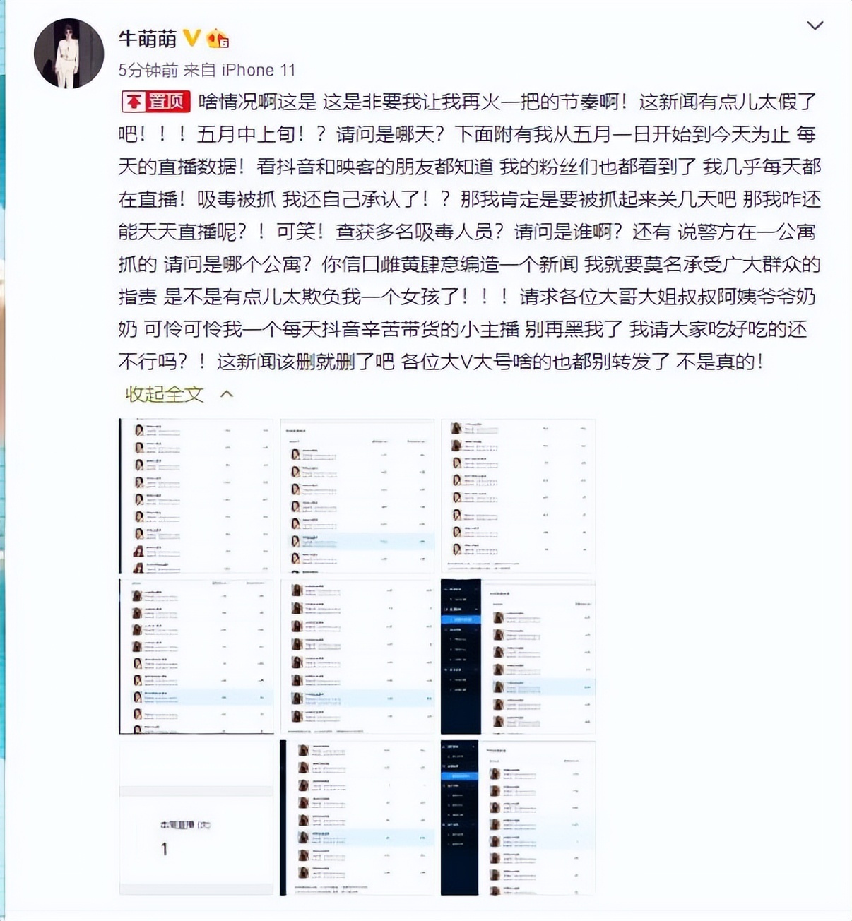 发完文后,她又开了一个直播,在直播中,牛萌萌谈到新闻报道时,忍不住翻了个白眼。