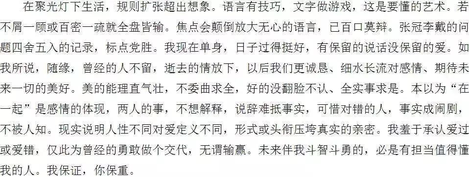 “我不希望报道太夸张影响我们之间的感情。”
