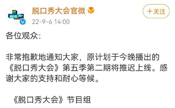 2、9月6日,原本是第二期节目上线的时间,官微却发博说节目推迟播出,希望大家能继续支持节目并耐心等候。