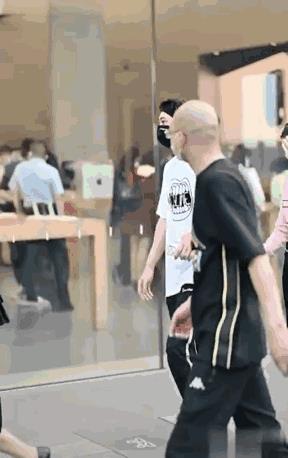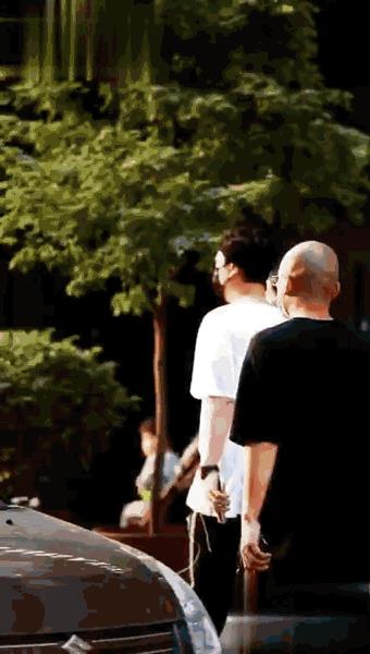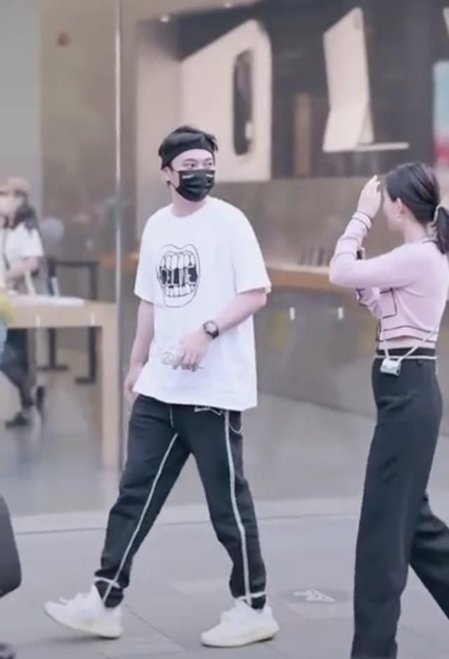 他继续贯彻“低调的奢华”作风,一件名牌白T恤加黑色运动裤,简单又休闲,只有头上的黑色发箍稍微增加了一点潮味。