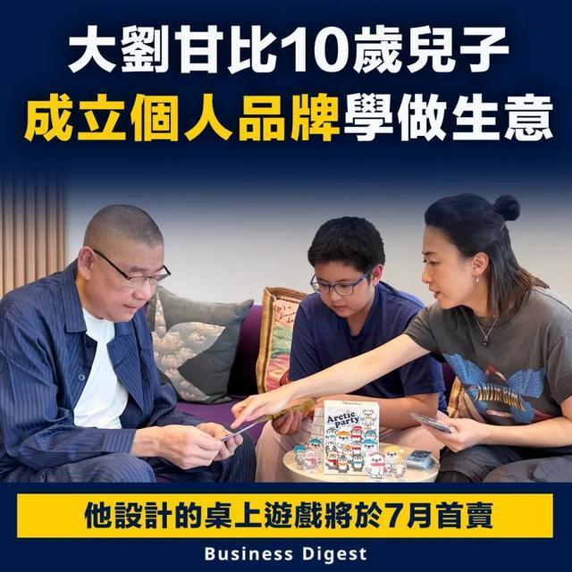 此前,甘比在社交网为10岁儿子刘仲学创立的个人游戏品牌“BJ Games”宣传时,曾公开大刘近照。