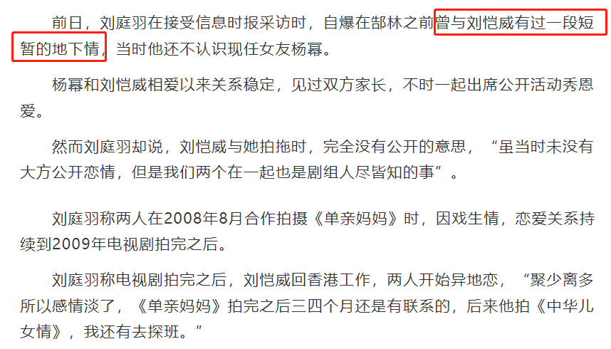 除了郜林,那个专访刘庭羽还爆料了另一段感情,她透露跟刘恺威发展过地下恋情,那时候刘恺威还没认识杨幂。