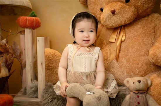 已经1岁半的宝宝,换了多套不同风格的裙子,还扎着小辫子,很是呆萌。